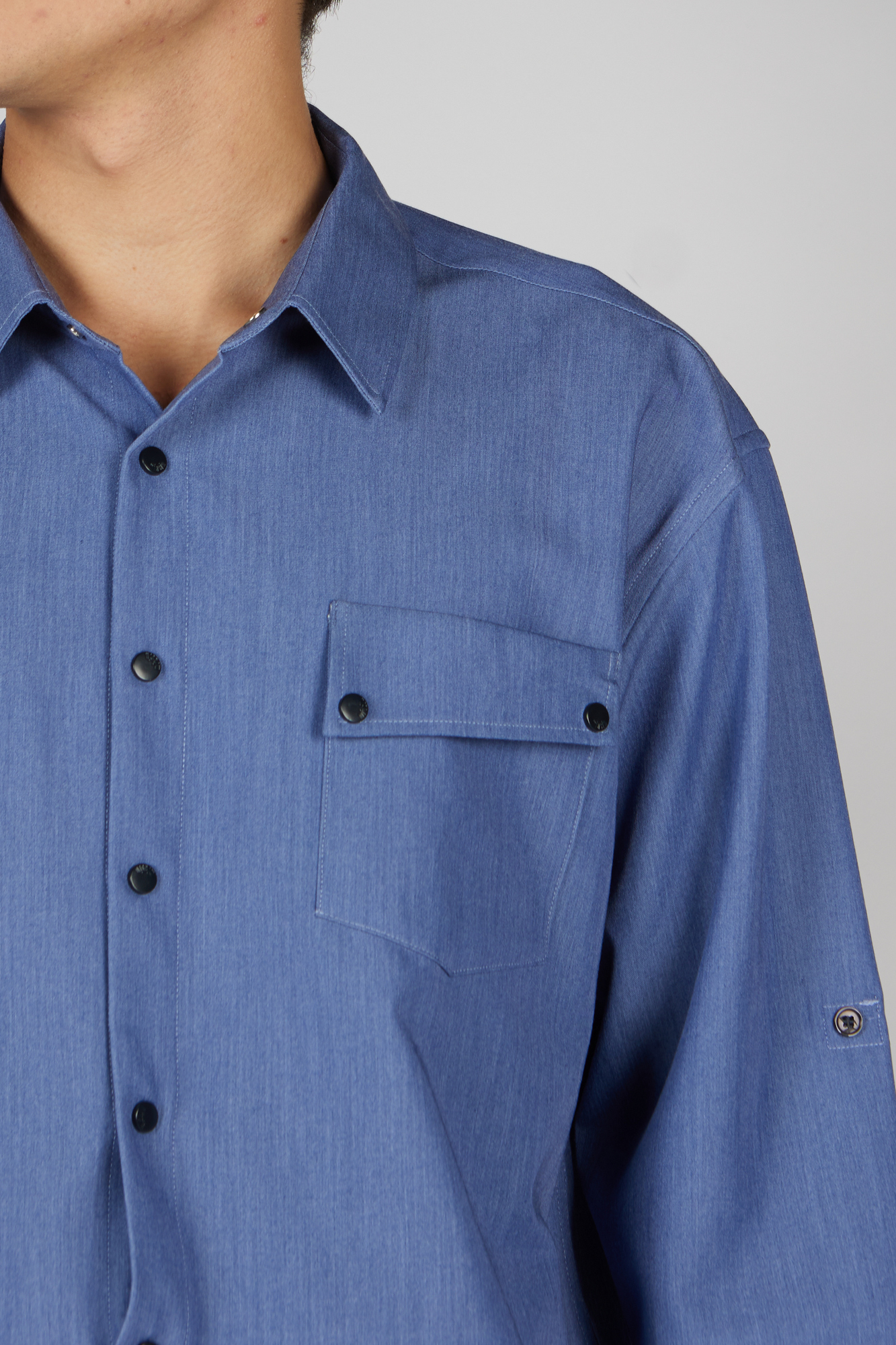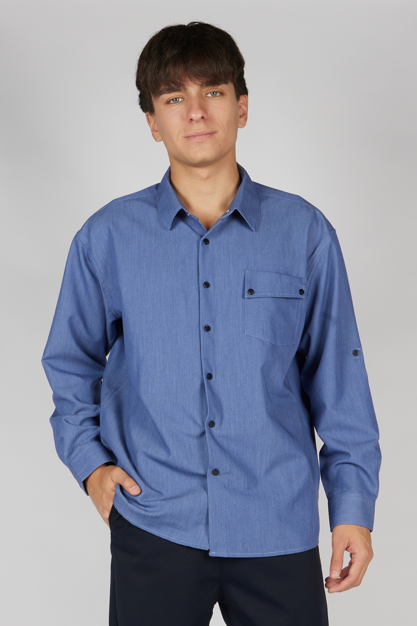 На кнопках. Ткань с диагональной структурой. Легко гладить